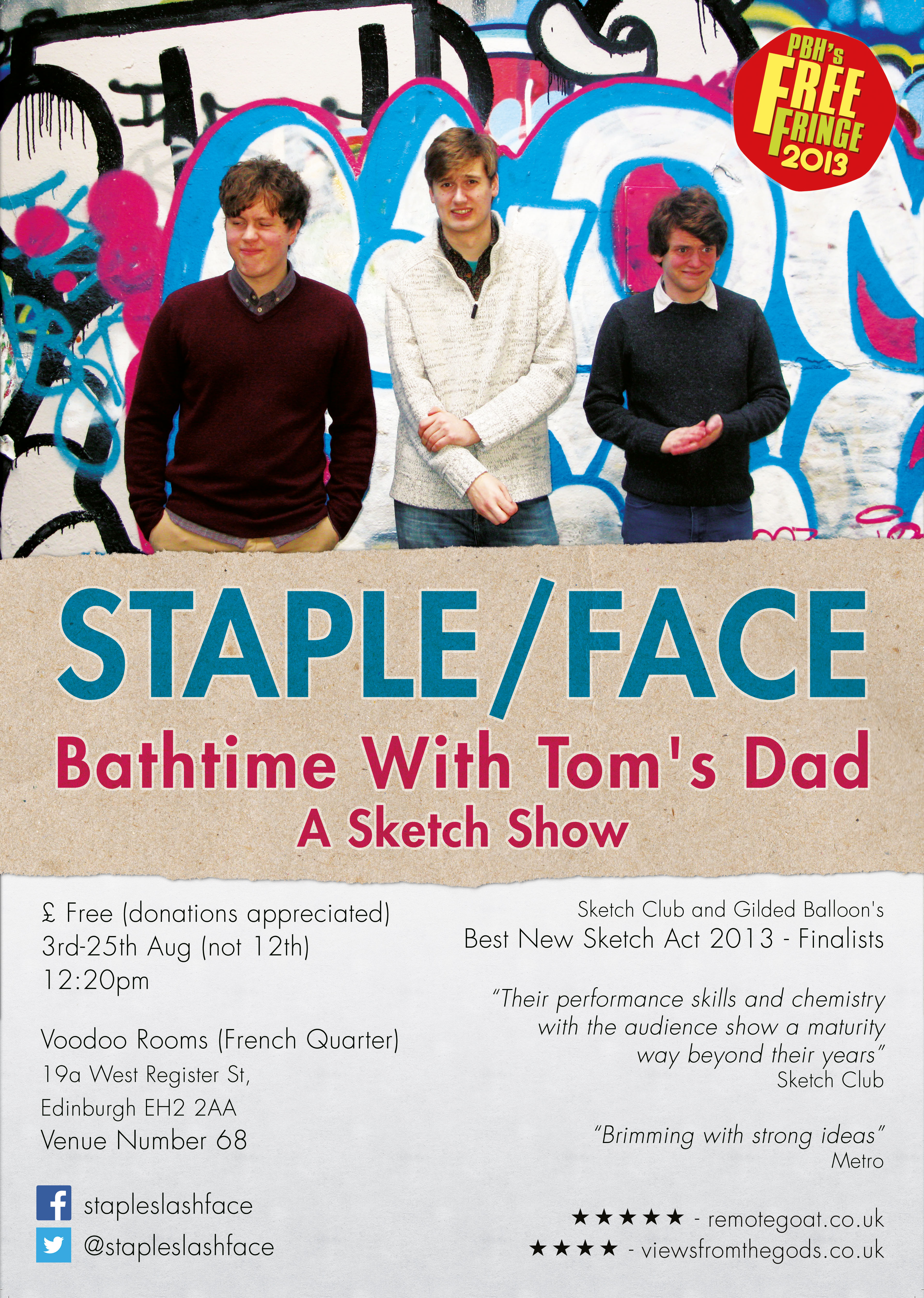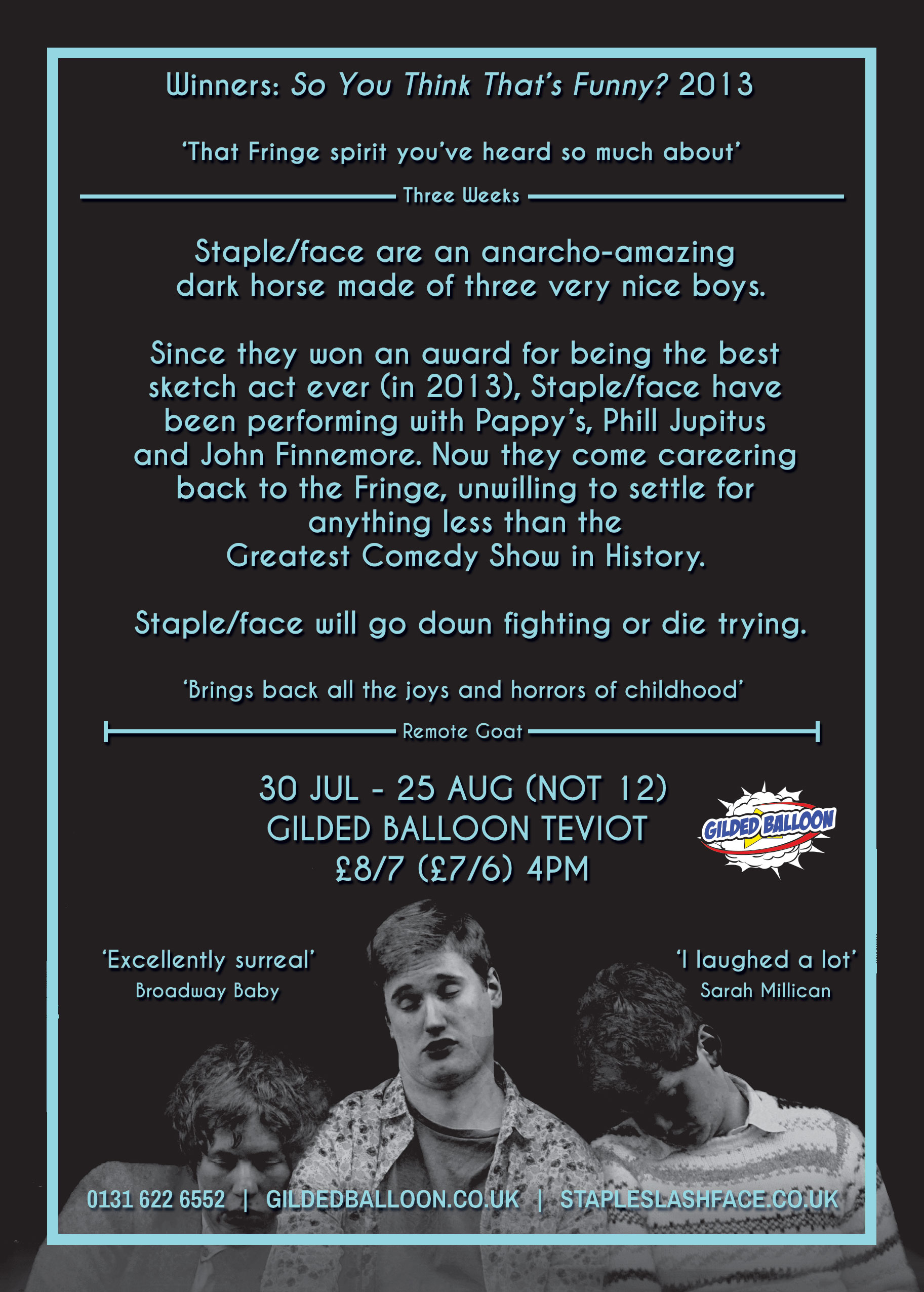 Luckily for us, the prize for being the Best Sketch Act in the country during the month of 2013 meant that this year we got to go back and do an entire run at the Gilded Balloon for free!