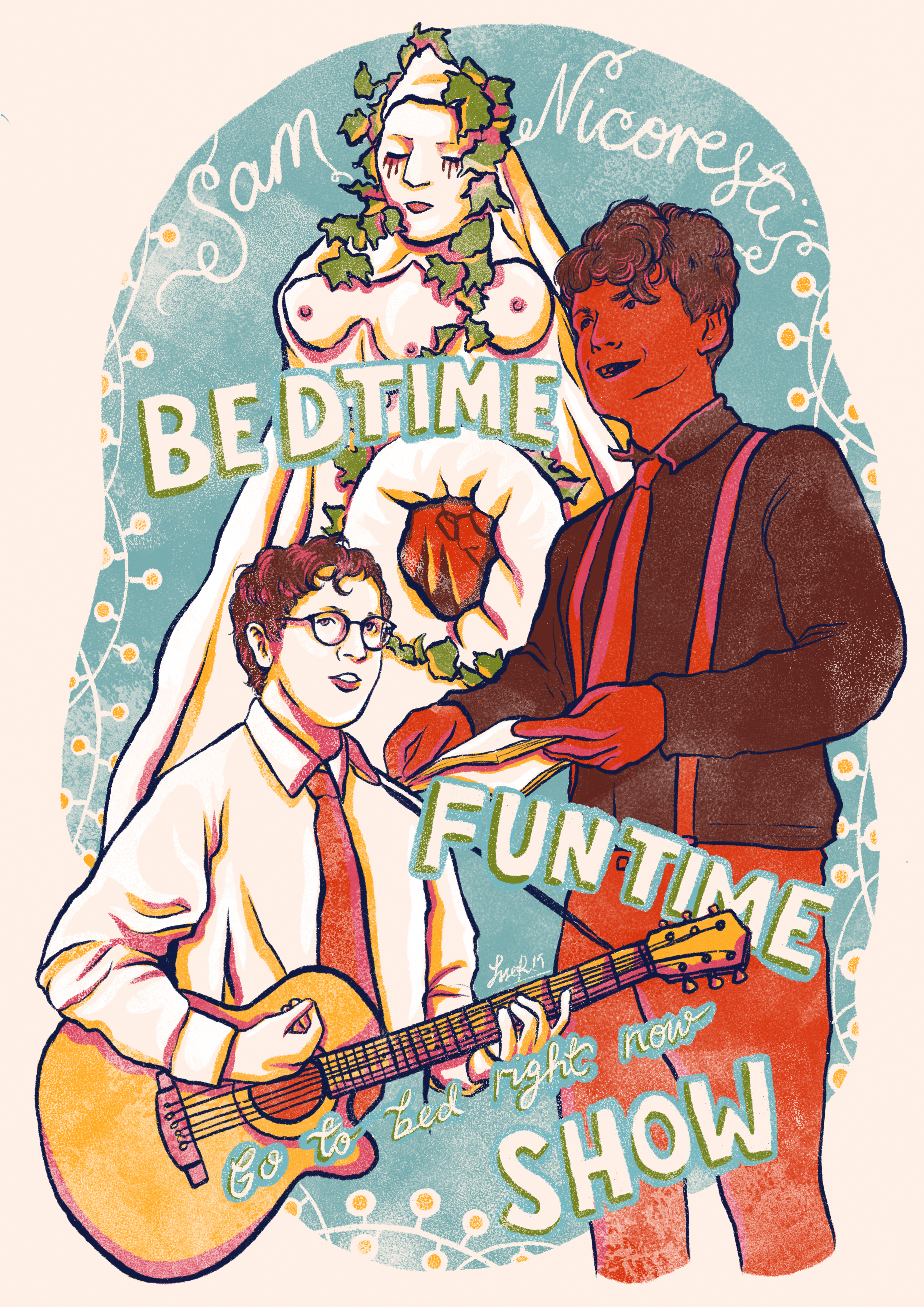 A hypnopompic comedy show about night terrors, orange and maroon men.