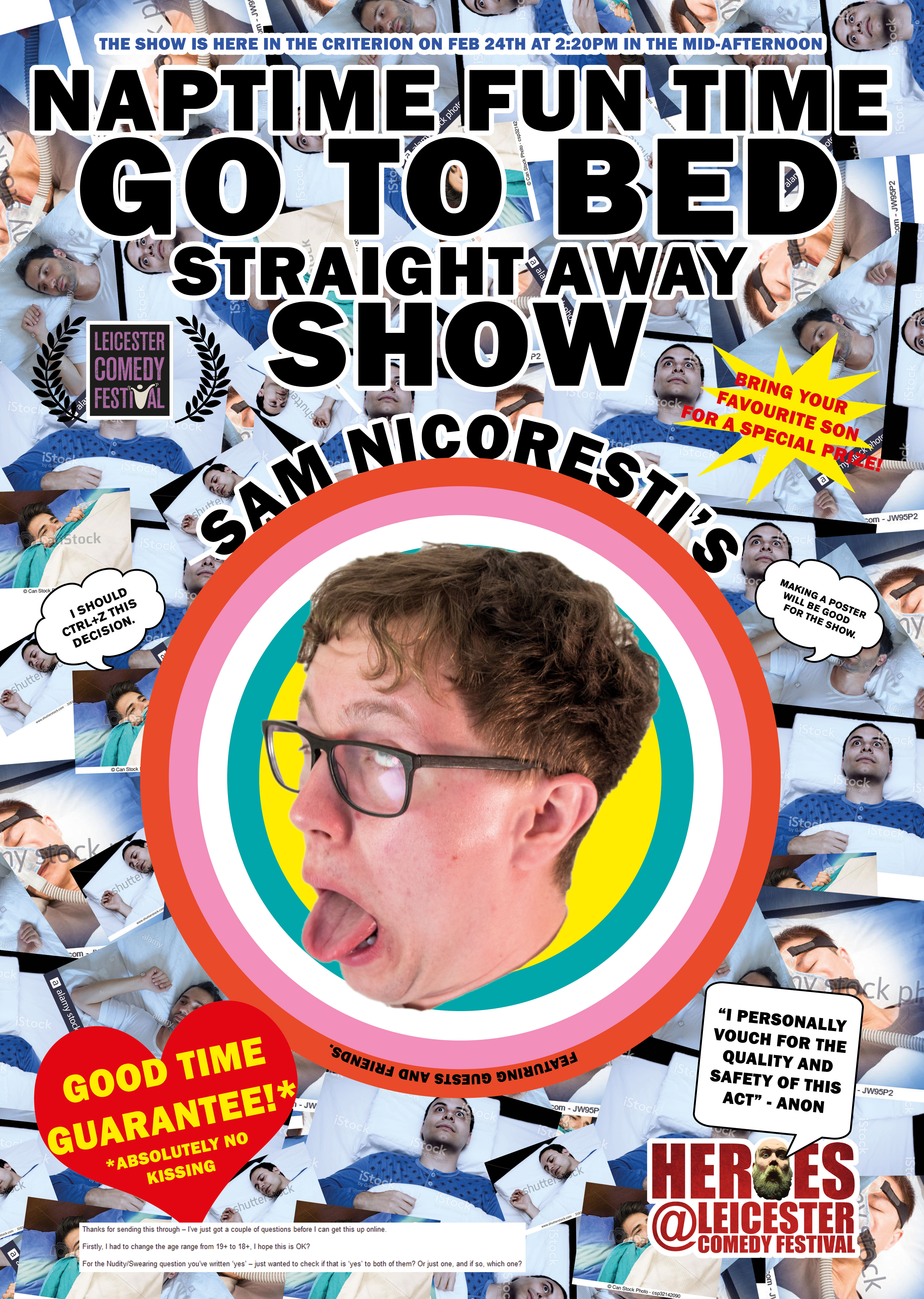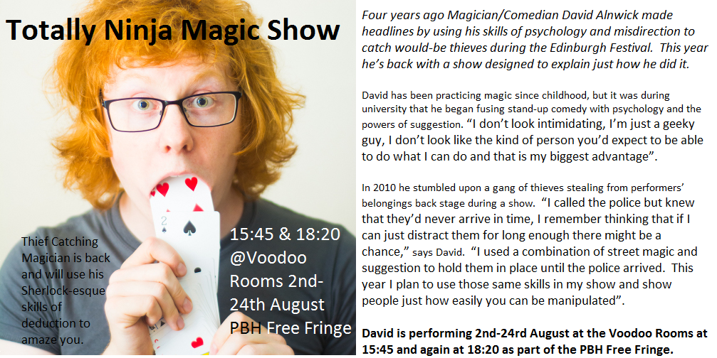 On even worse* advice we called the show Bathtime with Tom’s Dad and took a mid-afternoon slot in a venue with an 18+ bar, meaning we exclusively attracted families who we then had to turn away to the ninja magic show upstairs.