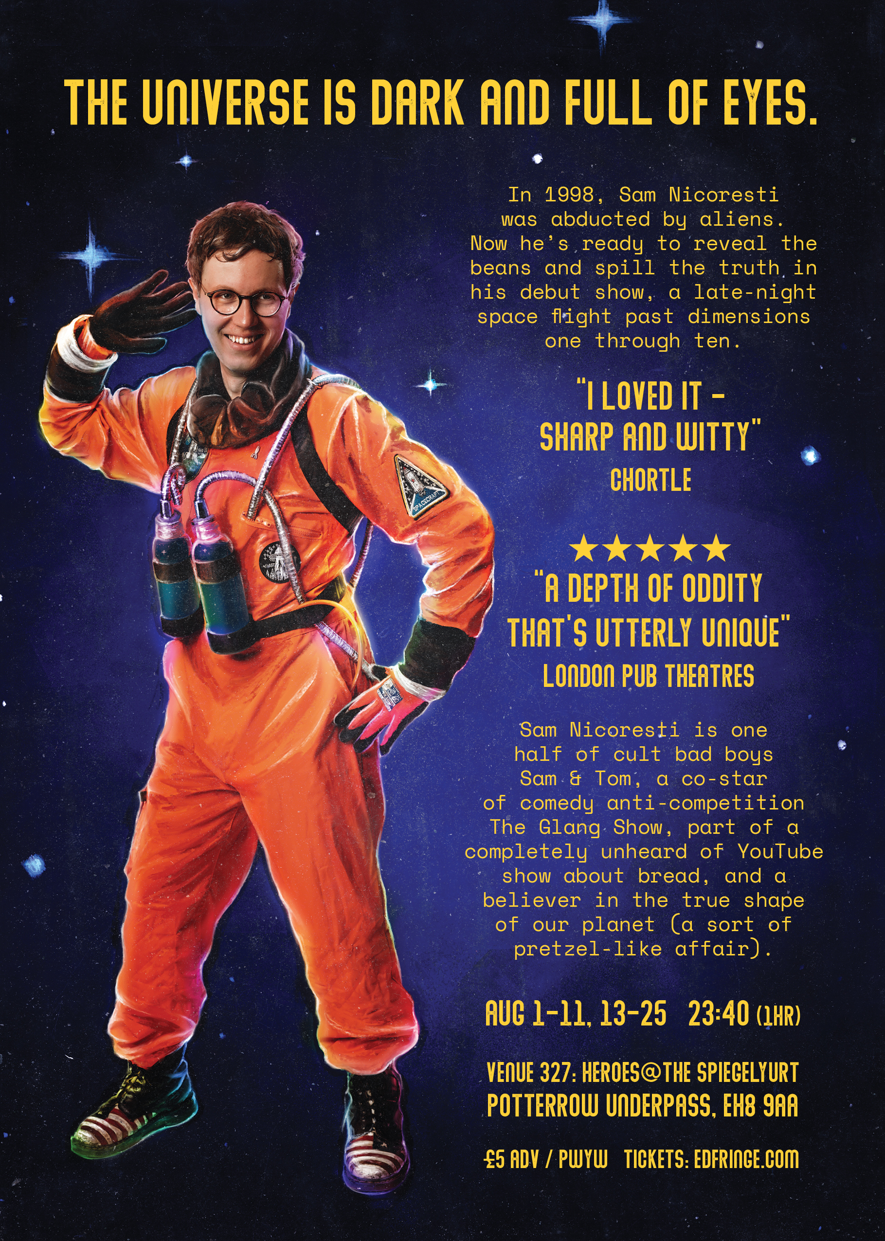 The original Edinburgh Fringe 2019 poster was designed by Lance Savukoski